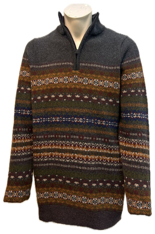 Horizontal Multi Color with Solid Yoke Round Neck Pullover- 1/2 zipper pullover